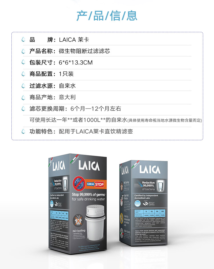 商品名称:莱卡LAICA直饮壶净水器滤芯1个装DUF